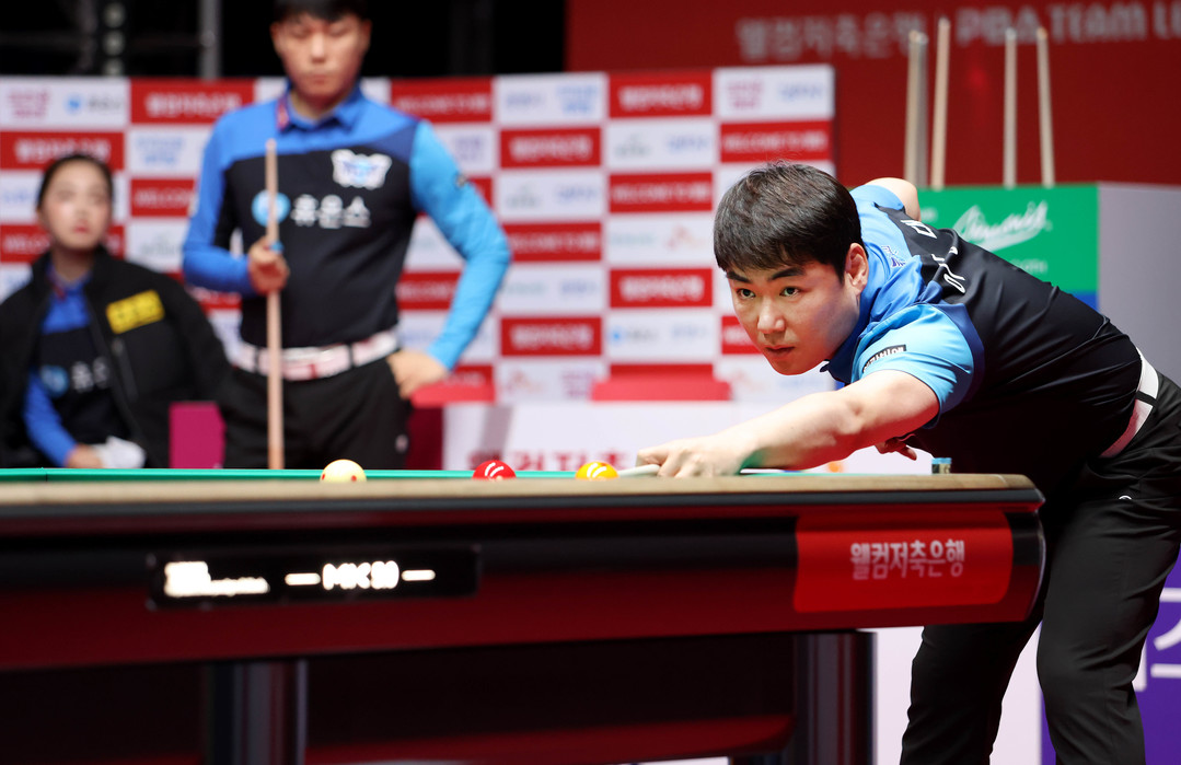[스마트시니어뉴스=신성식 기자] 휴온스가 하나카드를 꺾고 4라운드 우승 레이스서 앞서나갔다. 23일 경기도 광명시 광명시민체육관에서 열린 ’웰컴저축은행 PBA 팀리그 광명시 TOUR 2024-2025’ 4라운드 5일차서 휴온스가 풀세트 접전 끝에 하나카드를 4:3으로 잡아냈다.