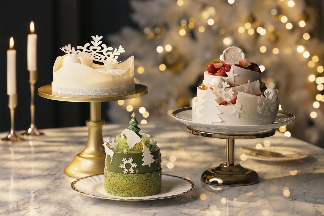 | ▲페스티브 케이크 5종. 최상단부터 시계 방향으로 라네즈 바닐, 사팽 오 테, 갸또 누아제트, 갸또 드 노엘, 생토노레 |
