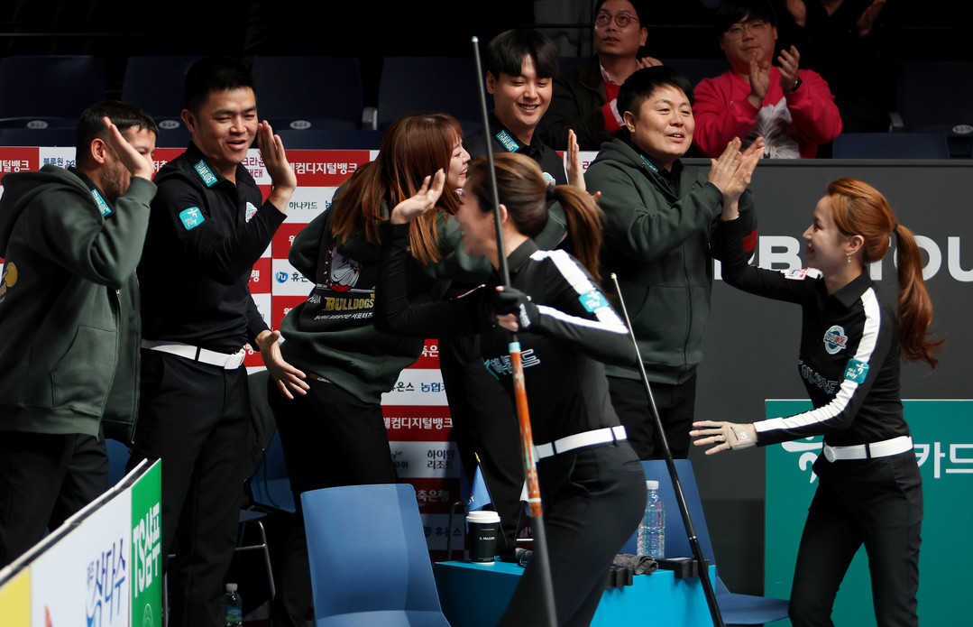이날 하나카드는 포스트시즌 진출을 놓고 경쟁하던 웰컴저축은행에 승리해 중요한 고비를 넘었다. 특히 ‘베트남 특급’ 응우옌꾸옥응우옌의 활약이 빛났다. Q.응우옌은 첫 세트서 신정주와 호흡을 맞춰 비롤 위마즈(튀르키예)-서현민을 11:4(7이닝)로 꺾은 데 이어 2세트서 김가영-김진아, 3세트서 무라트 나지 초클루(튀르키예)가 승리를 보태 빠르게 3:0으로 달아났다. 하나카드는 4세트서 초클루와 사카이 아야코(일본)가 서현민-최혜미에 6:9(7이닝)로 패배했으나 곧바로 5세트서 Q.응우옌이 위마즈를 9이닝만에 11:7로 제압, 경기를 세트스코어 4:1 승리로 마무리했다.