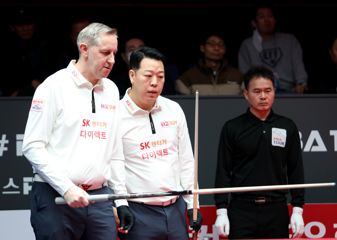 SK렌터카도 블루원리조트를 풀세트 접전 끝에 4:3으로 꺾고 귀중한 승점을 확보했다. ‘팀 리더’ 강동궁이 1세트 에디 레펀스(벨기에)와의 복식에 이어 5세트 단식서 강민구를 상대로 뱅크샷 네 방을 앞세워 2승을 보태 팀 승리를 견인했다. SK렌터카 역시 정규라운드 전체 순위서 공동 3위(승점55)를 달렸고, 5라운드 순위 역시 공동3위(승점10)에 올라 상승세를 탔다.