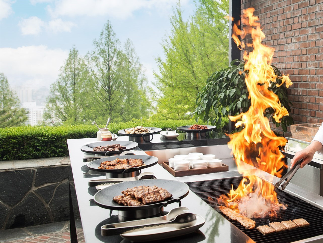 여름 하면 빼놓을 수 없는 바비큐를 소개한다. 뜨거운 그릴에서 바로 구워내 손님들에게 인기가 좋은 바비큐 스테이션에는 잡내가 없고 풍부한 육즙으로 테라스 뷔페의 대표 메뉴라고도 자부하는 ‘양갈비’가 먹음직스럽게 구워져 나오며, 주말 한정으로 선보이는 야외 바비큐 스테이션에는 LA갈비, 대하 구이, 완벽한 굽기의 스테이크와 겉바속촉의 삼겹살을 마음껏 즐길 수 있도록 제공된다. 여기에 더불어 바비큐와 환상의 궁합을 이루는 시원한 생맥주가 합리적인 가격에 제공되어 숯불 향이 가득한 바비큐와 함께 완벽한 페어링을 이루어 준다.
