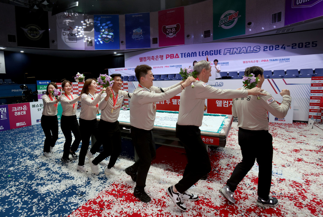 [Smart Senior News=유성욱 기자] SK렌터카가 PBA 팀리그서 창단 첫 파이널 우승 트로피를 들어올렸다. 27일 경기도 고양시 ‘고양 킨텍스 PBA 스타디움’에서 열린 ‘웰컴저축은행 PBA 팀리그 2024-2025’ 포스트시즌 파이널(7전 4선승제) 5차전서 SK렌터카가 우리금융캐피탈을 세트스코어 4:3으로 제압하고 합산 전적 4승1패로 정상에 올랐다.
