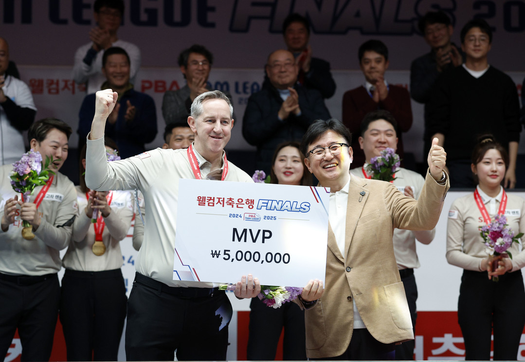 포스트시즌 파이널 MVP(상금 500만원)는 ‘벨기에 강호’ 에디 레펀스(벨기에)에게 돌아갔다. 레펀스는 이번 파이널서만 7승3패(승률 70%)를 거두며 팀의 우승을 이끌었다. 1세트선 응오딘나이(베트남)와 합을 맞춰 3승2패를 거뒀고, 단식서 4승1패을 거두며 맹활약했다. 반면, 우리금융캐피탈은 정규리그 3위로 준플레이오프에 진출, 웰컴저축은행과 하나카드를 차례로 꺾고 파이널에 올랐으나 아쉽게 준우승에 만족해야했다.