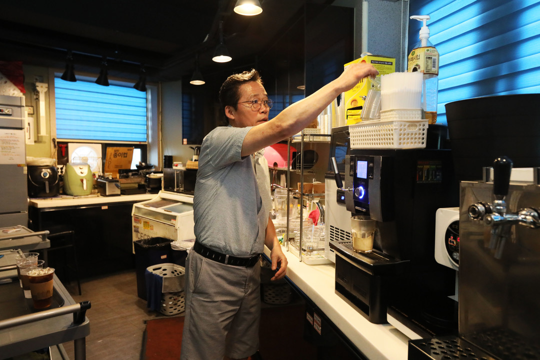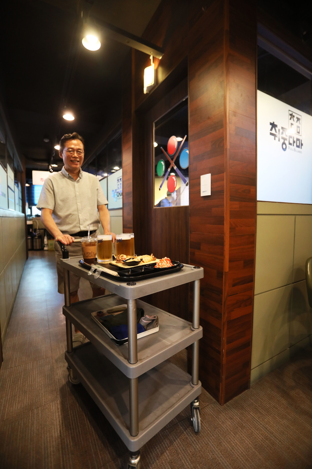 식당카트에 생맥주와 안주를 싣고 룸으로 서빙하고 있는 김영만 대표, 그가 당시에는 없던 새로운 사업모델인 룸당구장을 처음 오픈한 것은 지난 2020년 2월. 주방과 카운터, 룸을 오가는 틈틈이 지난 이야기를 들을 수 있었다.