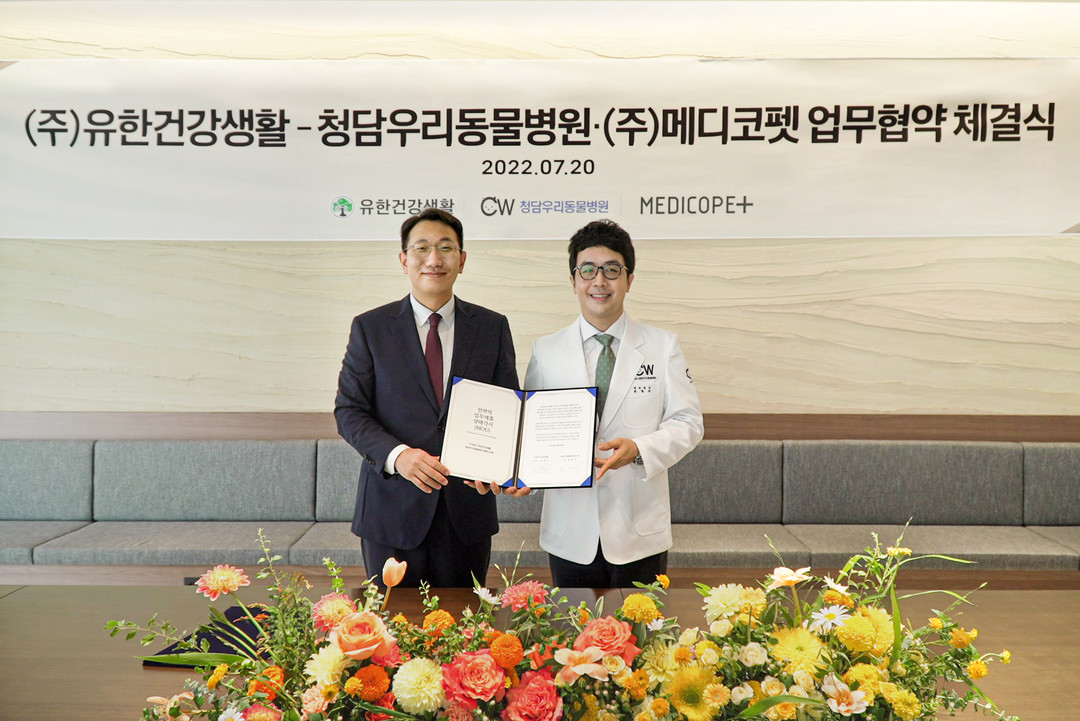 유한건강생활 강종수 대표이사는 “최고 의료진들로 구성된 청담우리동물병원과 주식회사 메디코펫과 함께 반려동물 건강 및 제품에 대한 전문성과 노하우에 대해 교류할 수 있어 기쁘다”며 “유한건강생활의 독보적인 천연물 라이브러리와 진정성 있는 제품 개발 철학을 더해 반려동물에게도 건강하고 진정성 있는 제품 개발을 위해 더욱 노력하겠다”라고 전했다.