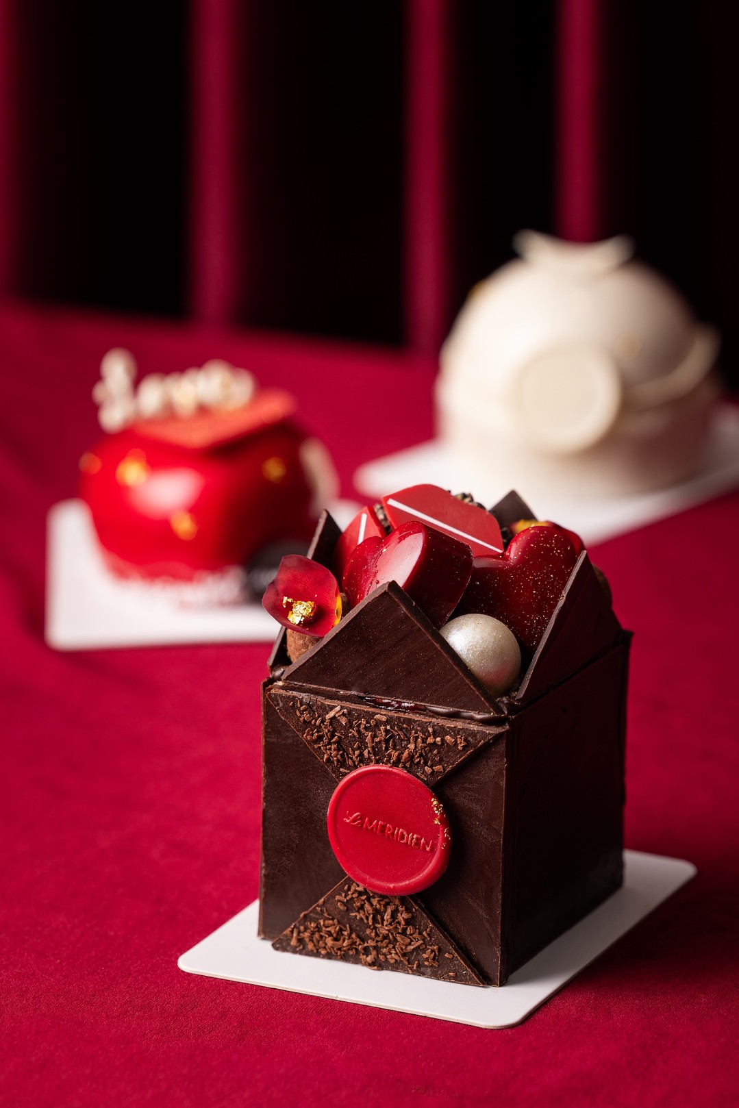 밸런타인데이의 로맨틱 감성 담긴 쇼콜라 세레나데 케이크는 초콜릿 무스가 2단으로 레이어드되어 더욱 풍부한 초콜릿의 진한 풍미를 느낄 수 있으며 라즈베리 하트 봉봉 초콜릿과 크런치 봉봉 초콜릿 데커레이션이 더해져 달콤한 선물과 같은 비주얼을 자랑하는 쁘띠 케이크이다.