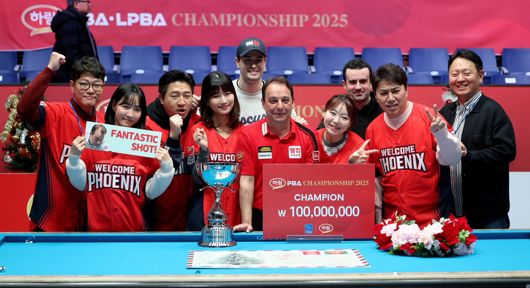 [욜드(YOLD)=조용수 기자] 스페인 3쿠션의 ‘살아있는 전설’ 다니엘 산체스(웰컴저축은행·51)가 프로당구 PBA 2개 투어 연속 정상을 밟았다. 7일 경기도 고양시 ‘고양 킨텍스 PBA 스타디움’에서 열린 프로당구 2025-26시즌 8차투어 ’하림 PBA-LPBA 챔피언십’ PBA 결승서 산체스는 강동궁(SK렌터카·45)을 상대로 세트스코어 4:2(9:15, 15:9, 15:8, 15:0, 9:15, 15:9)로 승리하고 통산 세 번째 우승 트로피를 들어올렸다. 이로써 산체스는 지난 11월 초 열린 직전 투어 ‘하이원리조트 챔피언십’ 정상에 오른 지 불과 26일 만에 또 하나의 트로피를 들어올렸다. 통산 세 번째 우승. 상금 1억원을 더한 산체스는 시즌 랭킹 1위(2억8150만원·337,500pt)를 굳게 지켰고 누적 상금 4억원을 돌파, 종전 11위서 6위(4억200만원)로 뛰어올랐다.