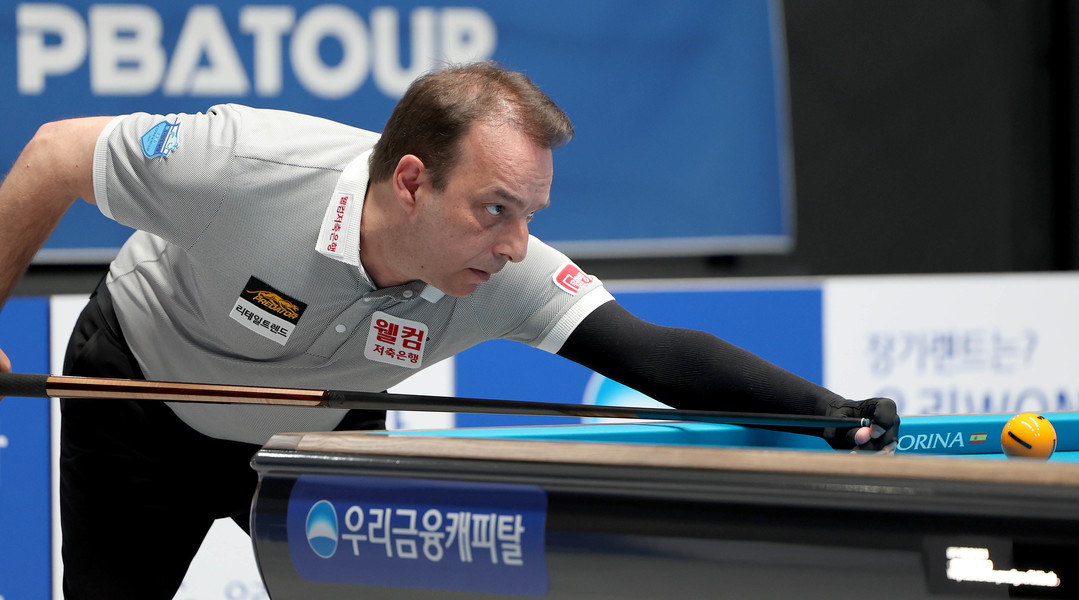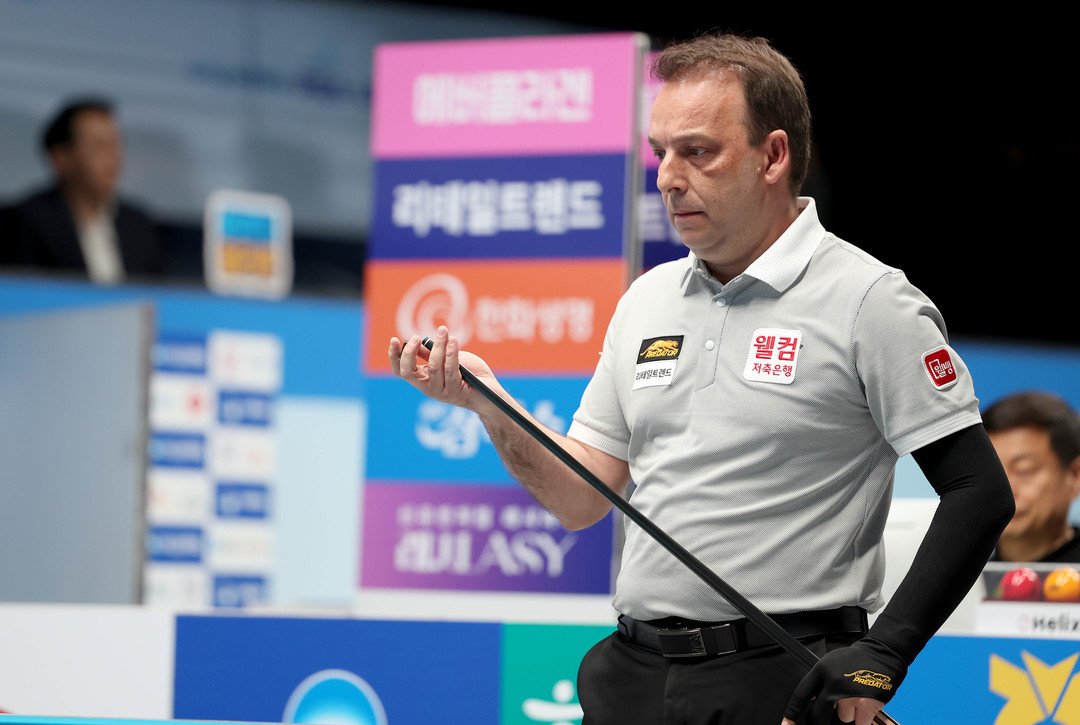 [욜드(YOLD)=조용수 기자] ‘스페인 3쿠션 전설’ 다니엘 산체스(웰컴저축은행)이 8강 진출에 성공했다. 9일 경기도 고양시 ‘고양 킨텍스 PBA 스타디움’에서 열린 프로당구 2025-26시즌 3차 투어 ‘올바른 생활카드 NH농협카드 PBA-LPBA 채리티 챔피언십’ PBA 16강전서 산체스는 ‘후배’ 하비에르 팔라손(스페인·휴온스)와 풀세트 접전 끝에 세트스코어 3:2로 승리를 거두고 8강 진출에 성공했다.