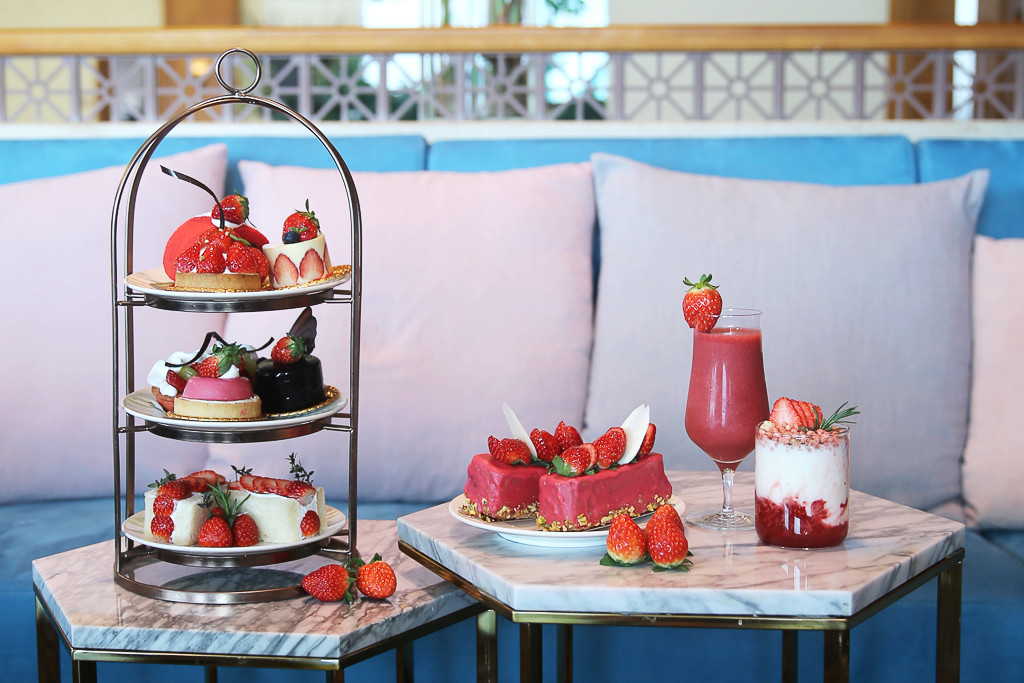 애프터눈티 세트 주메뉴는 딸기 산도 샌드위치, 딸기 타르트, 산딸기 플렁, 딸기 쇼콜라, 딸기 샤를로뜨, 딸기 브라우니, 딸기 크림 우유롤 등 다양한 딸기 디저트가 3단 트레이와 음료 2가지가 제공되어 티페어링으로 힐링의 시간을 즐길 수 있다. 또한, 라운지에서 미니 딸기 파운드, 생딸기의 신선한 과즙이 입안 가득 느껴지는 리얼 딸기 주스와 딸기요거트로 가볍게 디저트를 즐길 수도 있다.