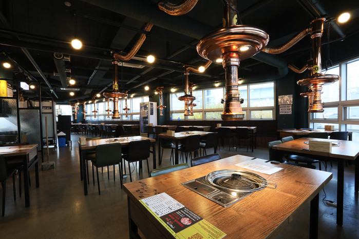 실평수 65평에 테이블 24개를 넉넉하게 배치해 고객들이 편안한 식사를 할 수 있도록 배려했다. 무한리필점이라 고객들이 직접 고기와 야채 등 식재료를 가지러 부스에 다니기에 불편함이 없도록 배려한 흔적과 변형된 마름모꼴의 실내에 창가로 좌석을 배치해 식사를 하면서 밖의 풍경을 감상할 수 있게 한 점도 고객을 위한 주인의 마음씨를 읽을 수 있는 대목이다.