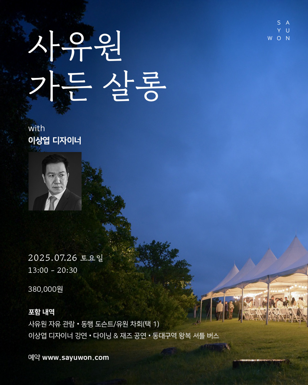 [YOLD=조용수 기자] 대구 군위에 자리한 사람이 만든 자연의 정수 ‘사유원’이 한여름밤 동시대 명사의 영감과 사유를 공유하는 지적인 문화의 장인 ‘사유원 가든 살롱’을 오는 7월 26일 개최한다. ‘사유원 가든 살롱’은 바쁜 일상에서 벗어나 자연, 조경, 건축, 문화, 철학, 예술이 한데 어우러진 사색의 공간을 온종일 경험할 수 있는 프로그램이다. 세계적인 건축가, 조경가, 예술가들이 참여한 수목원 관람뿐 아니라 동시대 명사와 함께 시간을 보내며 그의 영감과 사유를 공유하는 시간을 누릴 수 있도록 기획됐다.