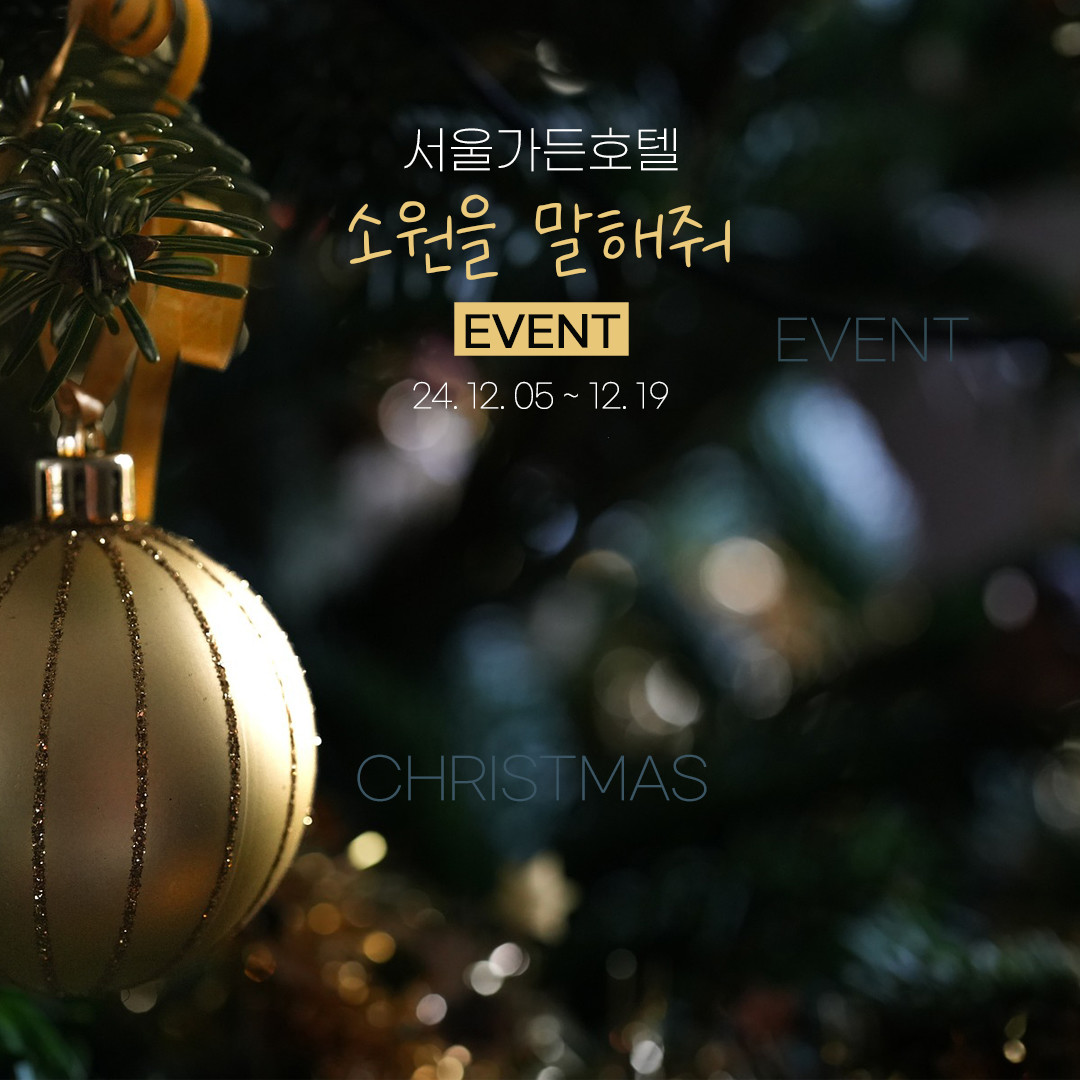 [스마트시니어뉴스=조용수 기자] 서울가든호텔이 오늘부터 19일까지 공식 인스타그램에서 '소원을 말해줘' 이벤트를 진행한다. 이번 이벤트는 호텔 계정을 팔로우하고 이벤트에 좋아요를 누른 후 소원을 댓글을 남기면 참여가 완료 된다. 이벤트는 20일 금요일에 당첨자를 발표하고, 선물로 호텔 숙박권부터 뷔페권, 와인, 미스트, 콜라겐 음료 등이 준비 되었다.