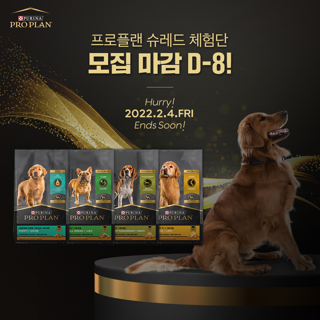 [스마트시니어뉴스=신성식 기자] 세계적인 반려동물 식품 전문기업 네슬레 퓨리나의 전문점용 슈퍼 프리미엄 브랜드 프로플랜이 모집하는 ‘프로플랜 슈레드 체험단’이 다음달 4일(금) 마감된다. 쫄깃한 슈레드 알갱이로 뛰어난 식감을 자랑하면서도 순살 닭고기로 맛과 영양까지 높인 ‘프로플랜 슈레드 라인업’을 소개할 이번 체험단은 네슬레 퓨리나 공식몰을 통해 누구나 신청할 수 있다.
