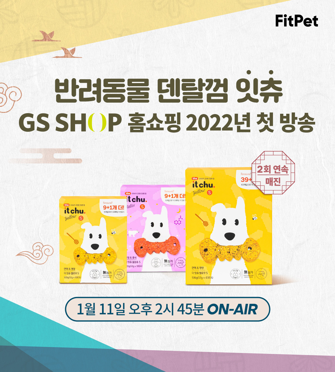 [스마트시니어뉴스=김승호 기자] 반려동물 헬스케어 솔루션 스타트업 핏펫(대표 고정욱)이 반려동물 덴탈껌 ‘잇츄’가 지난 12월 GS SHOP(GS홈쇼핑) 1, 2회차 방송에서 연속으로 전량 매진을 기록했다. 잇츄는 지난 12월 1일 진행된 론칭 방송에서 준비된 ‘핏펫 마니아 세트’ 물량이 방영 직후 매진을 기록했다. 이어 24일 크리스마스를 맞아 특집 편성된 2회차에서도 방송 중 전체 매진으로 방송이 조기 종영되는 등 2회 연속 완판을 달성해 ‘반려가구 필수템’다운 인기를 입증했다.