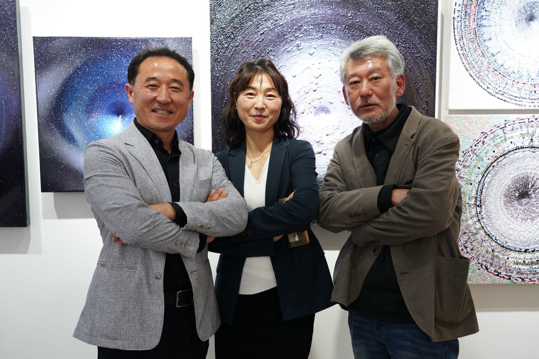 | ▲코리아 포일 이두인 대표와 백공 백용인 작가, 그리고 개관식에 참가해 기념 공연을 한 스타리 이수정 |