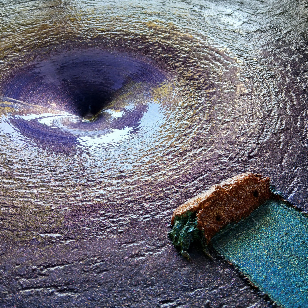첫 번째는 보조개 캔버스다. 2020년 백공 백용인이 창안한 보조개 캔버스의 모티브는 작업실 언저리에 작은 연못을 만들던 중 물을 채우는 과정에서 시작되었다. 이 보조개 캔버스는 "빛은 물을 통과할 때 굴절한다"라는 기억에서 창안한 문장 '물의 깊이는 보이는 것보다 깊다, 사람의 마음도 그렇다.'란 명제를 이미지화한 결과물이다. 이 구조는 캔버스 평면 중앙을 손가락으로 꾹 눌러놓은 듯하다. 이 형태가 딸의 보조개와 같아서 보조개 캔버스라고 이름을 붙였다. 보조개 캔버스를 만들어 놓고 바라보면 쏙 들어간 한 점은 부분이나 들여다보면 부분이 전체다. 즉, 모든 이치와 현상이 한 점으로 모이고 다시 전체로 확산됨이 보인다. 그래서 태초의 한 점과 같은 이 꼭짓점을 공니즘GongNism의 한 점이라 한다. 보조개 캔버스를 개발한 후, 첫 작품은 2020 문화관광체육부 구리시 공공미술 프로젝트 작품의 주제 '내가 만드는 시간' 구리시 시간 갤러리 90m 평면 조형작품으로 제작되어 있다.