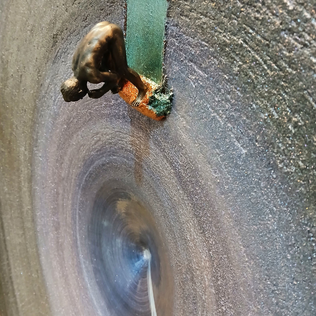 두 번째는 바닥을 응시하고 있는 조형물이다. 허리를 구부린 체 바닥만을 응시하고 있는 조형은 "일 잘하는 남자"로 이름을 붙였다. 이 조형작품은 일상의 사물을 보고 느끼는 시각적 요소에서 벗어나 바닥의 공간, 한점의 영zero과 무한을 응시하고 있다. 그래서 영zero과 무한을 동일시했으며 눈으로 보이는 시각적으로 사물을 인식하는 것이 아니라 심연의 무의식에서 무한의 가치를 찾고자 함이다. 이 작업의 모티브는 평상시 그의 구부정한 어깨의 구조로 걸을 때 항상 땅을 보고 걷는 습관과 무관하지 않다. 제작의 원칙은 그리스 조각과 달리 근육을 과장하지 않고 카메라 기능 중 Focus Out 기법을 사용하였다. 이 조형물은 인체 크기와 1:1 크기와 7cm 미니어처 두 종류로 만들어 사용하고 있다.
