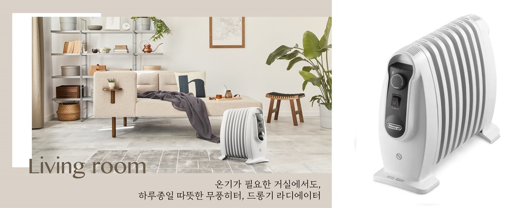 라디에이터는 공간 온도를 빠르게 데워주지 못하고, 실내 공기가 탁하고 건조해진다고 오해하는 경우가 많다. 이탈리아 프리미엄 가전 브랜드 ‘드롱기(De’Longhi)’의 ‘라디에이터’는 라디에이터 사용의 걱정 요소인 소음과 냄새가 없으며, 피부가 건조해질 것이라는 편견을 깨는 제품이다. 공기를 연소시키지 않기 때문에 건조함이나 불쾌한 냄새가 전혀 발생하지 않는다. 특히, 드롱기만의 리얼 에너지(Real Energy) 기술로 원하는 온도까지 빠르게 도달한다. 전원을 꺼도 기기 내부의 기름으로 최대 25m³의 실내에서 오랫동안 따뜻함이 유지되고 열이 지속적으로 발생되어 겨울철 에너지 절감에 도움을 주는 제품이다.