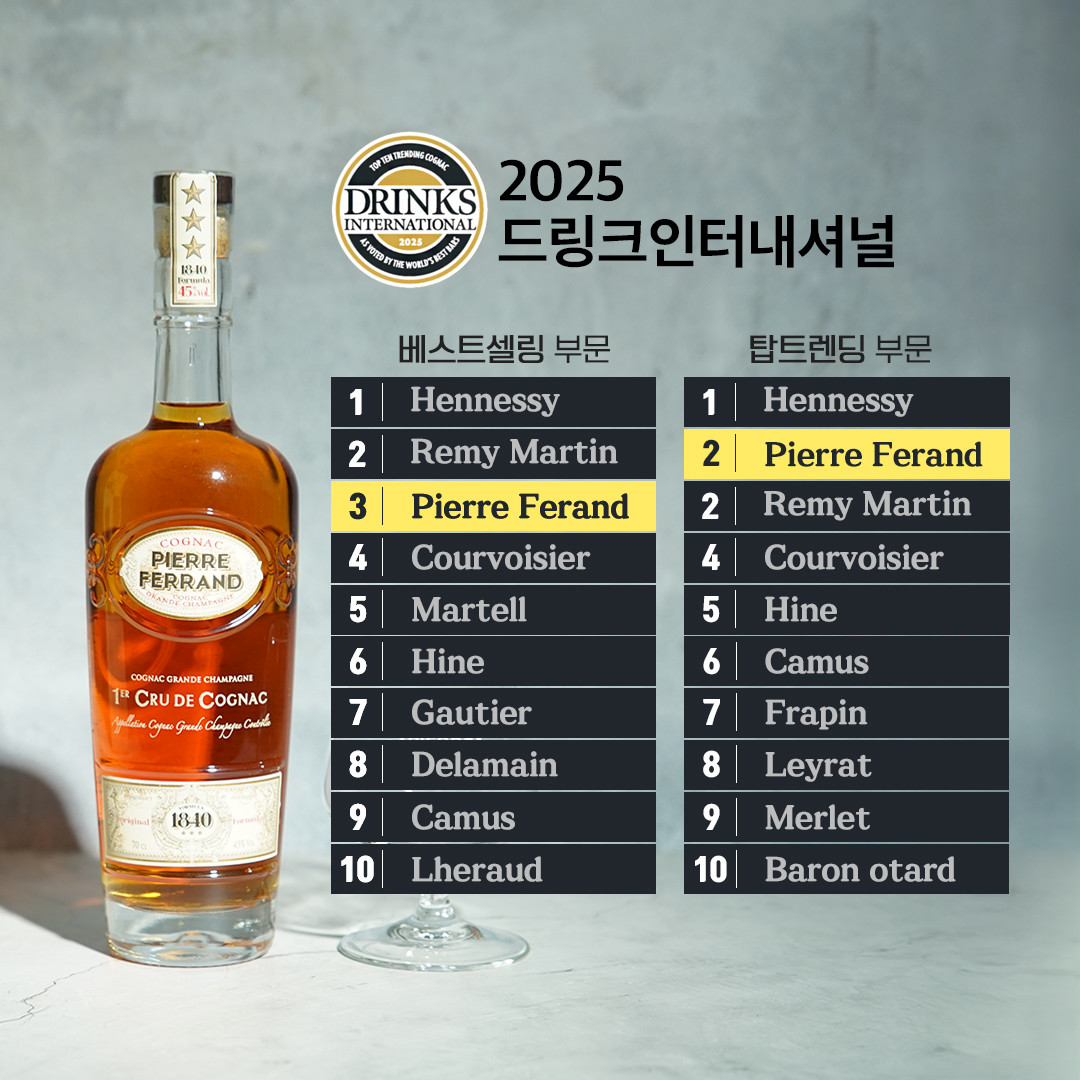 ■ 2025 드링크 인터내셔널(Drink International) 선정 베스트셀링 & 탑트렌딩 코냑 브랜드 순위권 진입