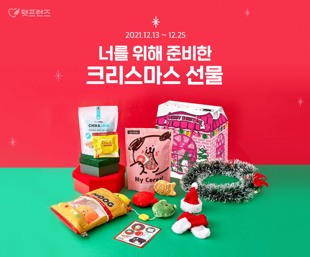 카테고리별 인기 간식과 반려동물 용품으로 구성된 크리스마스 선물 꾸러미도 이벤트 기간 중 상시 판매한다. 총 5종에서 10종까지 다양한 선물세트가 준비돼 있어 필요에 따라 구성을 선택할 수 있다. 구매 시 금액별로 루돌프 머리띠, 크리스마스 케이프, 스티커 등 사은품을 증정한다.