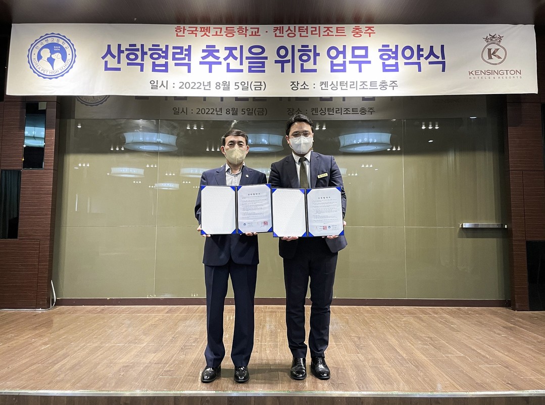 이번 협약은 현장에서 요구되는 우수한 인재양성, 현장 실습 및 체험 교육 제공을 통해 양 기관의 협력 체제를 구축하는데 목적이 있다. 협약에 따라 켄싱턴리조트 충주와 한국펫고등학교는 △산학 연계 맞춤형 인재 양성 프로그램 실시 및 기능 인력 추천, △졸업예정자 및 졸업생에게 현장 경험 기회 우선 제공, △연구활동과 정보교환, 위탁 교육 등의 분야에서 적극 협조키로 했다.