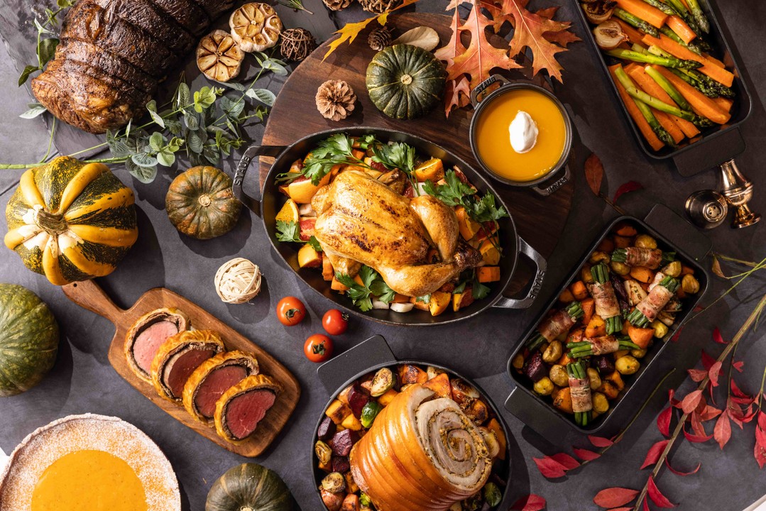 메인 요리로는 약 5kg의 슬로우 로스트 칠면조가 가장 큰 인기를 끈다. 겉은 바삭하면서 속은 촉촉하게 구워낸 칠면조에 오렌지 진저로 맛을 더한 크랜베리 소스를 곁들이면 전통적인 추수감사절의 풍미가 그대로 살아난다. 또한 사과와 헤이즐넛을 가득 채운 통 오리구이, 깊은 풍미가 일품인 삼겹살 포르게타, 육즙 가득한 꽃등심 구이, 격식 있는 파티의 주인공이 될 비프 웰링턴까지 다양한 옵션이 마련되어 있어, 가족과 친구들이 각자의 입맛에 맞는 요리를 함께 즐길 수 있다.