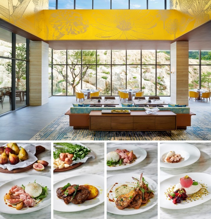 전면 통창으로 마주하는 이국적인 암석원의 절경과 화사하게 피어나는 금빛 천장 벽화가 미학적인 성문안의 정통 이탤리언 레스토랑 ‘피오레토(Fioretto)’는 가을 제철 식재료들을 활용한 식전 요리와 메인 요리, 파스타, 디저트 등 신 메뉴 6종을 선보인다. 고소한 부라타 치즈에 짭조름한 프로슈토와 제철 과일이 입맛을 돋우는 ‘부라타와 계절 과일 샐러드’부터 저온에서 부드럽게 조리한 송아지 정강이 찜에 샤프란 리소토와 향긋한 그레몰라타를 곁들인 ‘밀라노식 오소부코’, 마리네이드한 양갈비에 매콤한 살사 소스와 쿠스쿠스를 얹어낸 ‘양갈비 구이’ 제철 버섯을 듬뿍 넣은 라자냐에 담백한 베샤멜 소스가 어우러진 ‘버섯 라자냐’, 통통한 제철 새우와 수제 생 소시지 살치차, 생면 파스타로 다양한 식감을 느낄 수 있는 ‘스파게티 살치차 알리오 올리오’, 바삭한 머랭에 레몬 크림과 베리 소르베, 피스타치오가 상큼한 조화를 이루는 ’베리 머랭가타’까지 가을의 맛과 풍미가 가득한 요리로 고객들을 감동시킬 예정이다.