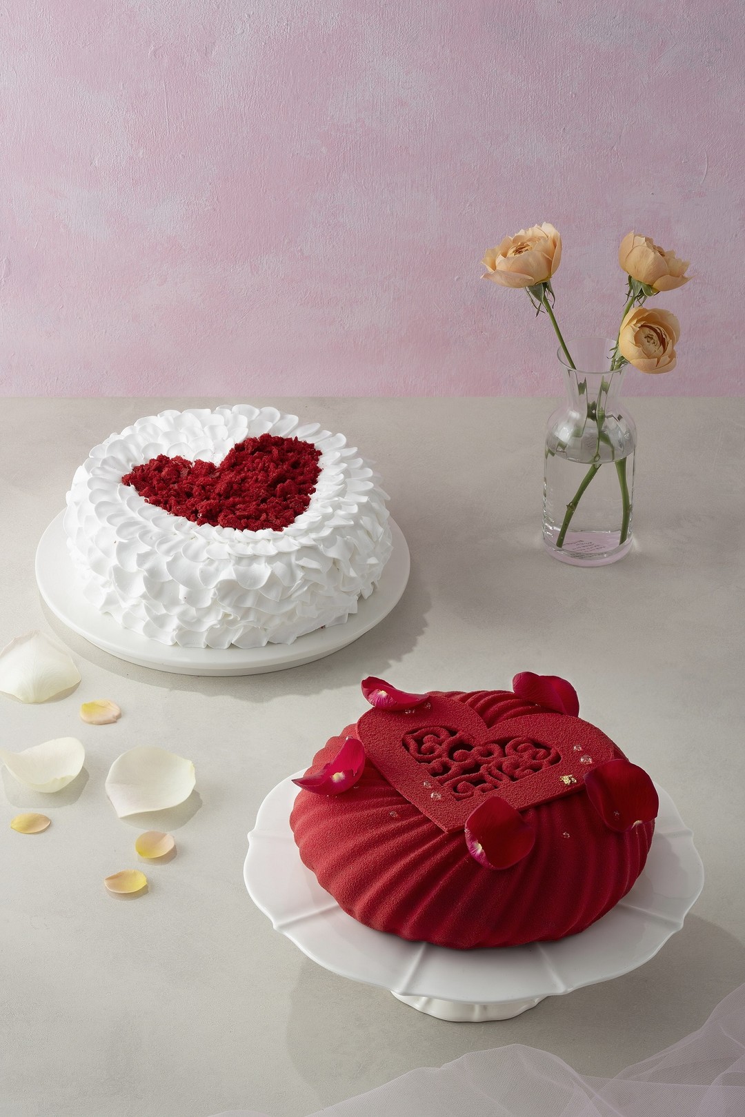웨스틴 조선 서울의 ‘조선델리’는 밸런타인 데이 스페셜 케이크로 ‘러브 벨벳’과 ‘아모르’ 총 2종을 3월 14일(금)까지 선보인다. ‘러브 벨벳’은 촉촉한 레드벨벳 시트와 크림치즈 프로스팅이 조화를 이루는 조선델리의 시그니처 레드벨벳 케이크로, 하얀 꽃잎 위 레드 하트로 포인트를 준 것이 특징이다. ‘아모르’는 부드러운 쇼콜라 블랑 무스와 은은한 풍미의 라즈베리 쇼콜라 누아 무스, 라즈베리 젤리와 포요틴이 조화를 이루며 하트 초콜릿 주변에 식용 장미 꽃잎을 올려 정열적인 사랑의 무드를 표현했다.