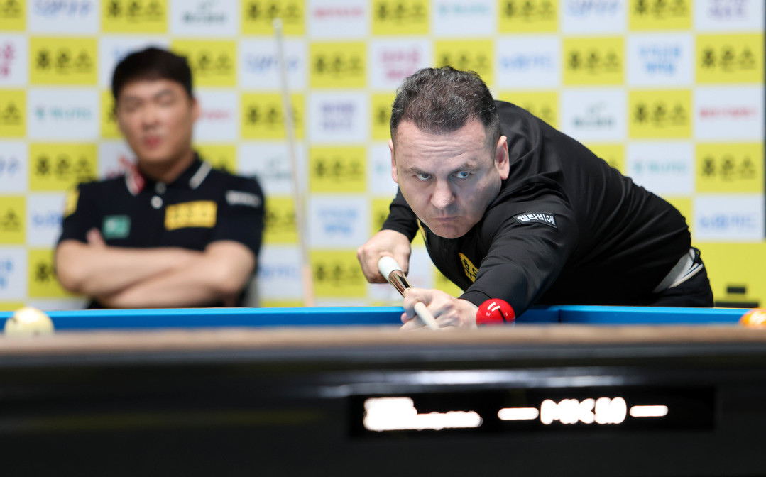 ‘디펜딩 챔피언’ 최성원은 올 시즌 드림투어(2부)서 뛰는 김홍민에게 패배해 대회를 조기에 마감했다. 최성원은 1세트를 12:15(8이닝), 2세트를 7:15(3이닝)로 지며 순식간에 두 세트를 내줬다. 최성원은 3세트 11:14로 뒤지던 상황서 11이닝째 1점, 14이닝째 2점으로 동점을 만들었지만, 김홍민이 15이닝째 마지막 득점에 성공하며 고배를 마셨다.