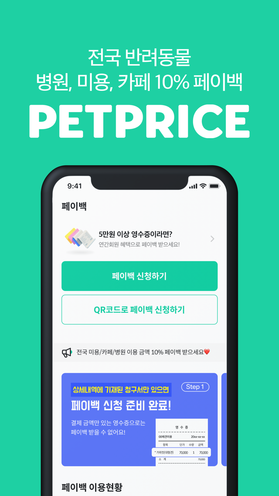 펫프라이스는 동물병원 진료비 비교 견적 서비스에 이어서, 동물병원비 페이백 서비스로 입지를 다지고 있으며, 애견미용샵과 애견카페까지 페이백 서비스로 확장하여 반려동물 보호자들의 호응을 얻고 있다.