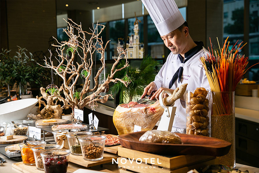칠면조는 로즈마리, 타임, 월계수 잎 등의 허브와 라임, 샐러리 등 각종 야채로 시즈닝해 준비된다. 칠면조의 육질과 허브 향이 어우러져 기존의 수원지역에서 만나볼 수 없었던 새로운 맛을 경험할 수 있다. 토마호크 스테이크 역시 미리 허브 오일에 마리네이드해 제공된다. 갈빗대를 잘라 굽는 방식이 아닌 통으로 구워 풍미는 더욱 살리고 육즙은 풍부하게 느낄 수 있는 방식으로 조리할 예정이다. 셰프가 칠면조와 토마호크 스테이크를 실시간으로 라이브 스테이션에서 조리하는 것을 보는 것 만으로도 특별한 경험이 될 것이다.