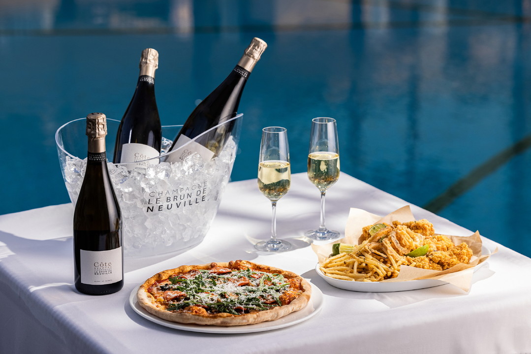 이번 ‘오아시스 풀사이드 버블 나잇’ 프로모션에서는 100% 샤도네이로 만들어진 샴페인 ‘르 브룬 드 누빌 꼬뜨 블랑쉐’를 무제한으로 만나볼 수 있다. ‘르 브룬 드 누빌 꼬뜨 블랑쉐’는 섬세한 버블과 풍부한 과실 본연의 풍미, 기분좋은 적당한 산미가 느껴지는 것이 매력이며, 함께 곁들여 즐길 수 있도록 깔라마리, 치킨, 프렌치 프라이, 페퍼로니 피자로 구성된 푸드 플래터도 제공된다.
