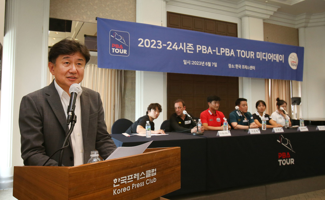 [스마트시니어뉴스=신성식 기자] 프로당구협회(PBA·총재 김영수)는 2023-24시즌 PBA투어 개막을 앞둔 7일 오후 한국프레스센터에서 ‘2023-24시즌 PBA투어 개막 미디어데이’를 진행했다. 행사에는 이번 시즌을 앞두고 프로 진출을 선언한 ‘스페인 3쿠션 전설’ 다니엘 산체스(에스와이), 이충복(하이원리조트), 한지은(에스와이)을 비롯해 지난 시즌 PBA-LPBA 시즌챔피언 조재호(NH농협카드)와 스롱 피아비(블루원리조트)가 참석해 입담을 과시했다.
