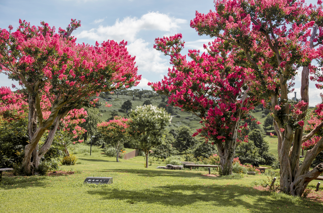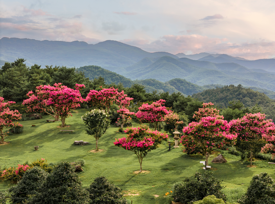 [욜드(YOLD)=유성욱 기자] 대구 군위에 자리한 사람이 만든 자연의 정수 ‘사유원’에 8월 1일부터 만개한 배롱나무꽃 정원을 중심으로 <사유원 별유동천 축제>가 펼쳐진다. 팔공산 지맥을 따라 조성된 약 10만 평 규모의 수목원으로 조성된 사유원의 다양한 주제 정원 가운데 ‘별유동천(別有洞天)’은 한여름 동안 특히 사랑받는 곳이다. 정원의 중심에는 수령 200년 이상 된 배롱나무들이 모여 ‘배롱나무꽃이 만개한 이곳은 인간 세상이 아닌, 무릉도원’이라는 이름 그대로의 진풍경을 자아낸다.