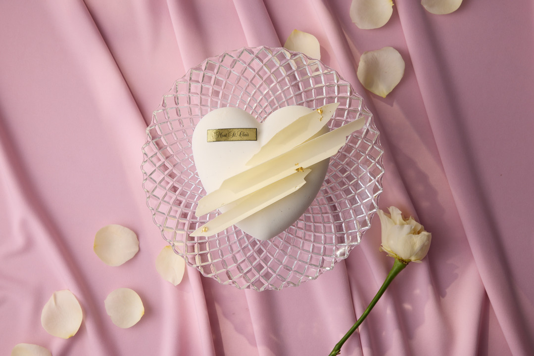 ‘네쥬(Neige)’는 프랑스어로 ‘순백’을 의미하는 케이크로, 깨끗한 순백의 사랑을 새하얀 하트 모양의 케이크로 구현하였다. 겉은 라임 제스트를 곁들여 새하얀 바닐라 무스에 상큼한 맛을 더하고, 속에는 새콤달콤한 블루베리와 블랙커런트, 하단은 바삭한 식감의 비스퀴조콩드와 바니유로 마무리하였다.