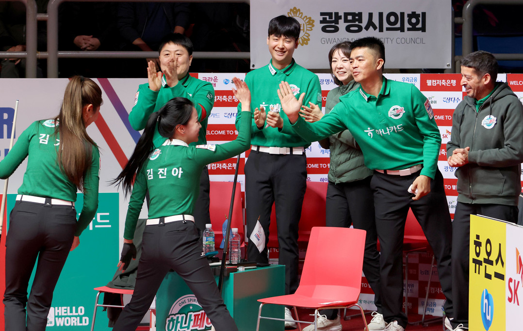 [스마트시니어뉴스=신성식 기자] 지난 시즌 팀리그 챔피언 하나카드가 3연승을 질주하며 4라운드 우승 경쟁에 합류했다. 22일 경기도 광명시 광명시민체육관에서 열린 ‘웰컴저축은행 PBA 팀리그 광명시 TOUR 2024-2025’ 4라운드 4일차서 하나카드는 풀세트 접전 끝에 4:3으로 우리금융캐피탈을 꺾고 3연승을 질주했다. 승점 2를 확보한 하나카드(승점 7)는 선두 그룹을 바짝 쫓았다. 우리금융캐피탈은 4라운드 첫 패배를 당했지만, 승점 1을 추가하며 2위(3승1패) 자리를 지켰다.