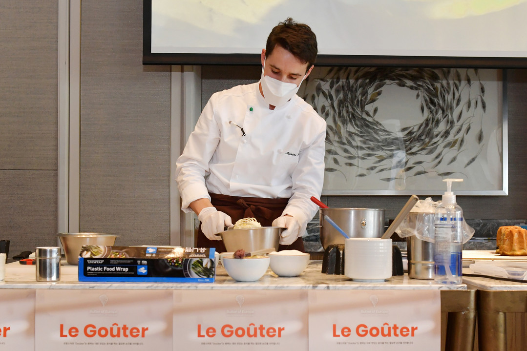 [스마트시니어뉴스=변준성 기자] 2021년 11월 18일 – 프랑스 국립낙농협의회 끄니엘(CNIEL: Le Centre National Interprofessionnel de l'Economie Laitière)이 주관하고 유럽연합(EU)가 지원하는 프랑스 버터 홍보 캠페인 ‘버터 오브 유럽’의 일환으로 11월 18일 롯데 시그니엘 서울 호텔에서 맥심 마니에즈(Maxime Maniez) 셰프와 함께하는 ‘프랑스 버터로의 여행, ‘르 구떼(Le Goûter)'를 성공적으로 진행했다. 이번 행사는 국내 식품 관련 기자들과 푸드 컬럼리스트, 베이킹 인플루언서들이 참여해 프랑스 버터의 생산과정 및 관리체계 등에 대한 정보와 프랑스 버터를 이용한 베이커리 시연을 통해 프랑스 버터의 우수성을 확인하는 자리가 되었다.