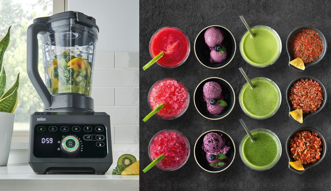 브라운만의 ‘트라이액션(TriAction)’ 기술력과 강력한 ‘프리시젼엣지 (PrecisionEdge)’ 칼날, 특수 고안된 삼각형 용기로 강력한 회오리를 일으켜 재료가 고르고 빠르게 갈리는 것이 특징이다. 직관적인 3단계 다이얼로 작동하는 ‘아이 텍스쳐 컨트롤(iTextureControl)’ 기능으로 ‘부드럽게’, ‘중간’, ‘거친’ 질감을 맞춤형으로 선택할 수 있다. 스무디, 수프, 다지기 등 6가지의 자동 음식을 총 3가지 질감으로 완성할 수 있는 총 18가지의 푸드 프로그램을 지원한다. 브라운의 ‘파워 블렌드 9’ 하나만 있으면 수프, 건강죽, 샐러드 소스, 아이스크림, 각종 스프레드 등 다양한 종류의 요리를 편리하게 완성할 수 있어 효율성과 편의성을 중요시하는 1인 가구나 신혼부부에 제격인 제품이다.