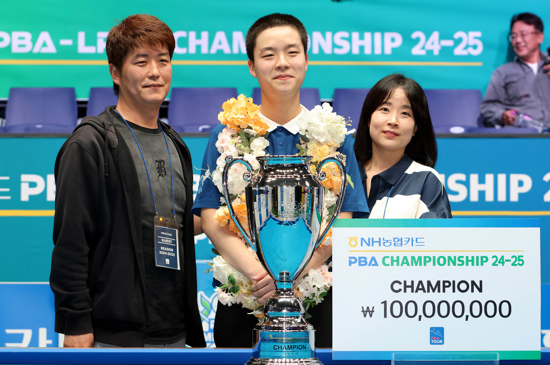 결국 프로 3년차인 올 시즌 기량이 만개했다. 1부 투어로 승격한 시즌 첫 대회(우리금융캐피탈 챔피언십)부터 준우승을 차지하더니 140일 만에 다시 결승에 올라 이번에는 기어코 우승 트로피를 거머쥐었다. PBA 22번째이자 대한민국 11번째 PBA 챔피언에 등극한 김영원은 우승 상금 1억원을 손에 넣었다.