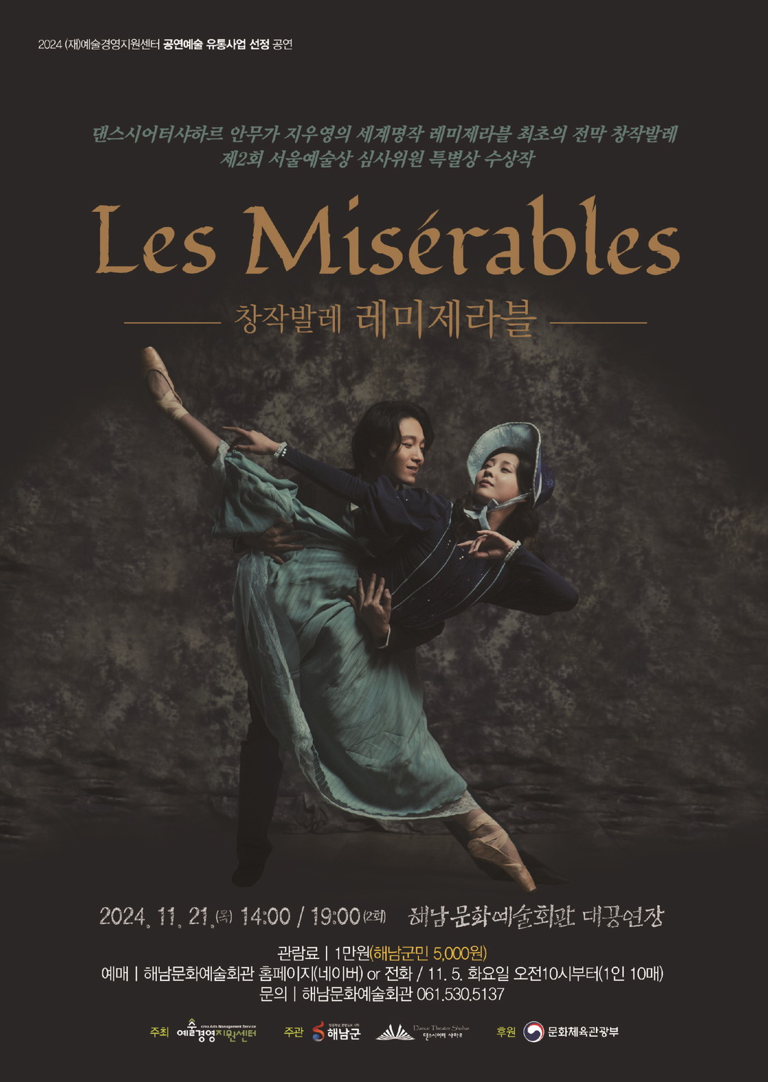댄스시어터샤하르 창단 20주년 기념으로 제작된 작품으로, 안무가 지우영의 독창적인 안무로 구성되었다. 국립발레단 주역 무용수 강준하가 장발장을 맡아 열정적인 연기를 선보이며, 가수 스테파니와 댄싱9의 정민찬이 각각 코제트와 마리우스 역할을 맡아 극적인 감정을 무대에서 연출한다.
