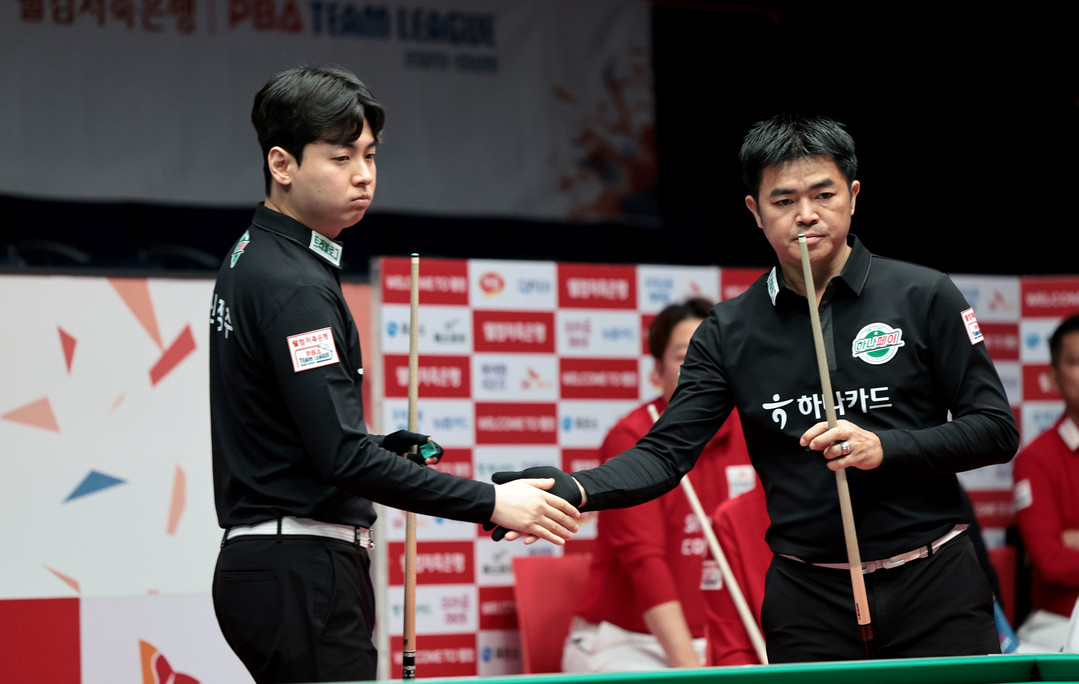 [욜드(YOLD)=조용수 기자] PBA 팀리그 4라운드가 반환점을 돌았다. SK렌터카가 여전히 선두 자리를 지키고 있는 가운데 크라운해태, 하나카드가 선두 자리를 맹추격하고 있다. 20일 경기도 고양시 ‘고양 킨텍스 PBA 스타디움’에서 열린 ‘웰컴저축은행 PBA 팀리그 2025-2026’ 4라운드 5일차에서 SK렌터카가 휴온스를 세트스코어 4:2로 꺾었다.전날(19일) 하나카드에 패배하며 11연승을 마감한 SK렌터카는 휴온스를 꺾으며 분위기 반전을 빠르게 성공했다. SK렌터카는 4승1패(승점 13)로 단독 선두 자리를 지켰다.