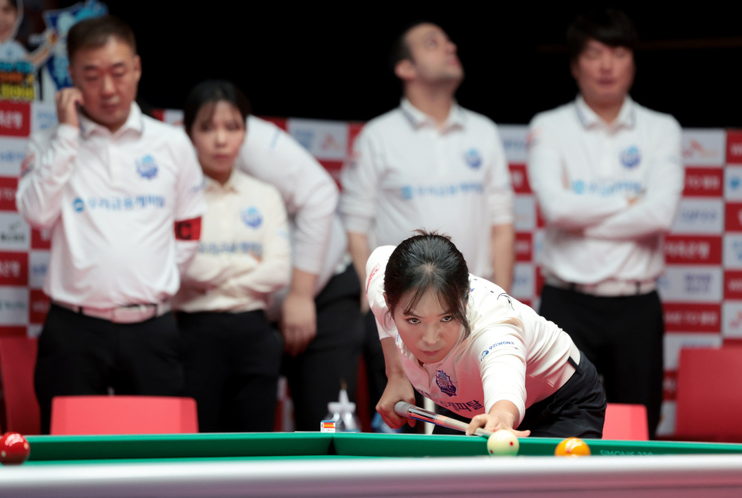 ‘여자 에이스’ 강지은의 활약이 돋보였다. SK렌터카가 세트스코어 2:1로 앞서던 4세트(혼합복식)에서 강지은은 응오딘나이(베트남)와 합을 맞춰 9:6(9이닝)으로 최성원-최지민을 막아세웠다. 강지은은 6세트(여자단식)에선 이신영을 상대로 접전 끝에 9:8(9이닝)로 승리해 팀에 승리를 안겼다. 휴온스는 2연패에 빠지며 4위(3승2패·승점 8)로 내려앉았다.