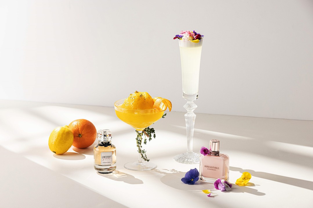 4가지 장미와 파츌리 허브향이 매력적인 이레지스터블 오 드 퍼퓸 로즈 벨벳(Irresistible eau de parfum rose velvet)은 보드카 베이스에 피노쉐리와 샤인머스켓, 그리고 바텐더가 직접 만든 웨딩부케 그린 티 시럽을 인퓨징 해, 달콤하고 향기로운 조합의 칵테일, ‘웨딩 부케’로 선보인다. 지방시의 아이코닉 향수 랑떼르디 밀레짐므 버닝 네롤리(L’interdit millesime buring neroli)의 시그니처 원료인 오렌지 블로썸에서 영감을 받아 탄생한 칵테일, 오렌지 브로썸은 보드카 베이스에 오렌지 퓌레를 믹스한 후, 오렌지 제스트로 가니시 해 상큼한 칵테일의 정수를 표현했다.