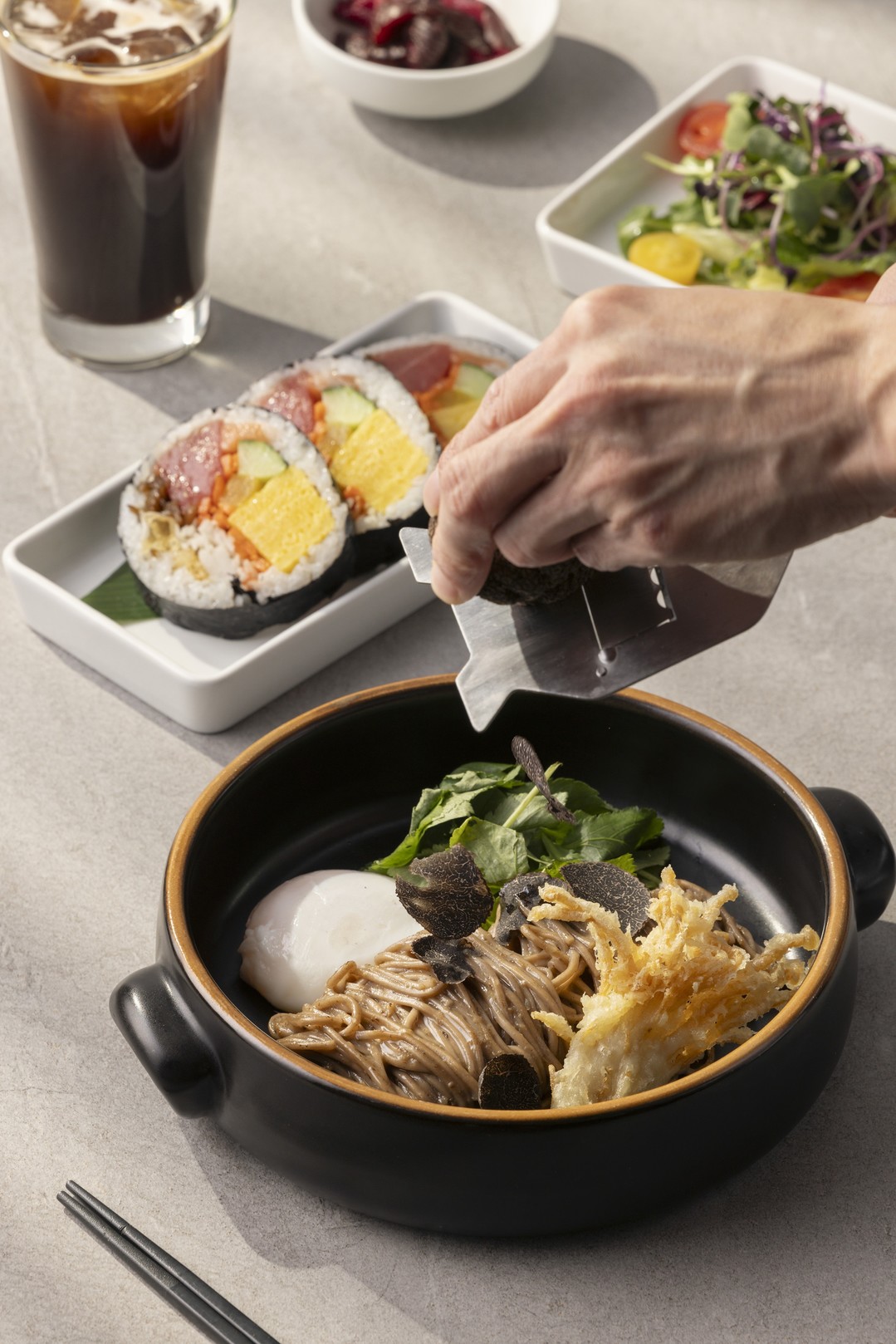 식전빵으로 폭신한 식감과 고소한 올리브의 풍미가 어우러지는 포카치아가 함께 제공되며, 신선한 채소와 사이드 디시 또한 제공되어 감칠맛을 더해준다. 더불어, 저속노화 열풍에 따른 건강한 재료와 현대적인 미각이 결합된 고품격 다이닝, 트러플 메밀 소바 & 후토마키를 선보인다. 특유의 풍미가 미각을 자극하는 트러플 소스와 자연의 깊은 맛을 담고 있는 버섯, 자연방목한 달걀을 저온 조리한 수란이 어우러진 메밀 소바와 신선한 해산물과 영양 가득한 채소가 가득 담긴 정통 일본식 롤, 후토마키 세트로 구성된 이 메뉴는 미네랄과 항산화 성분이 풍부하여 노화 방지에 도움을 주는 이로운 성분을 가득 담아 선보이며, 샐러드와 미소장국 및 사이드 디시가 함께 제공되어 맛과 건강 모두가 고려된 완벽한 맛의 균형을 경험할 수 있다.
