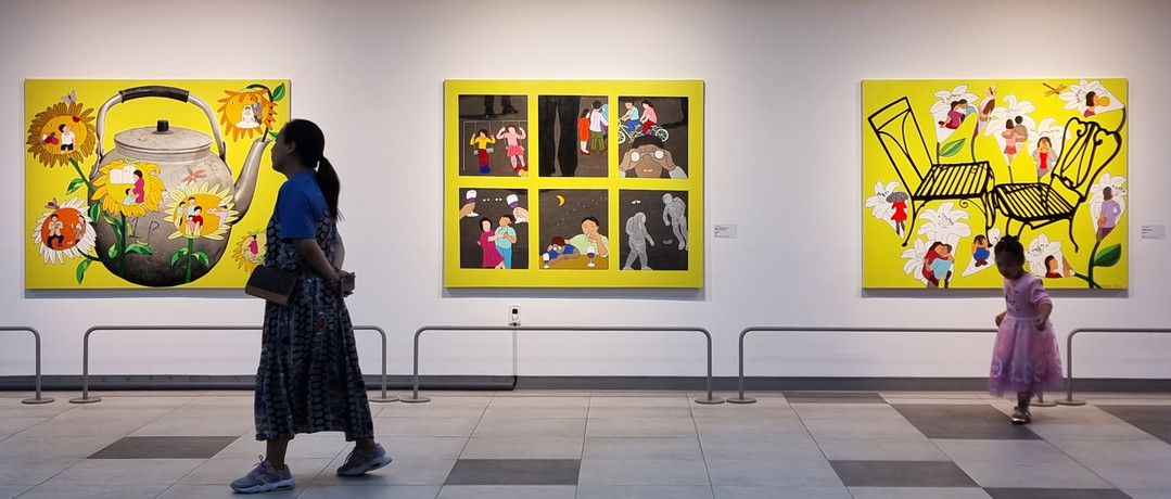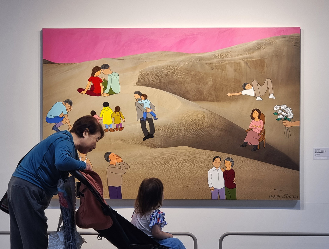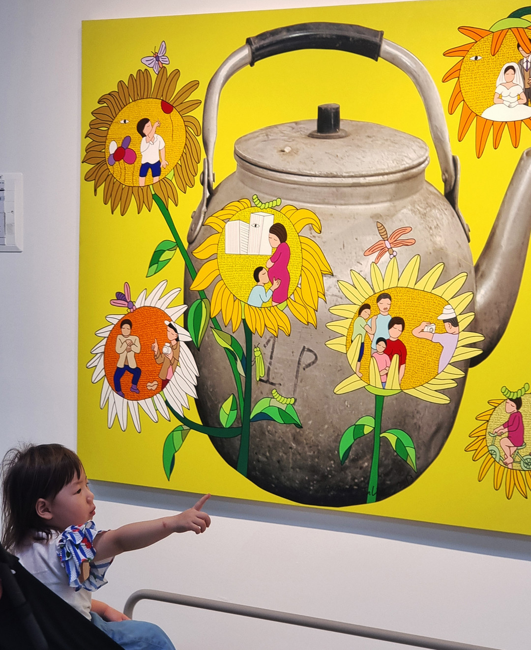 황주리 작가는 “서울대병원 측의 전시 제안을 받아들인 것은 외출이 쉽지 않은 어린 환우들에게 그림 감상의 기회를 주기 위해서였다. 삭막한 병원이지만 밝은 그림을 통해 잠시라도 밝음이 머물렀다 가기를 기원한다”고 소감을 밝혔다.