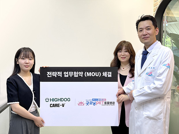 [스마트시니어뉴스=백경석 기자] 프리미엄 펫푸드 ‘하이독’이 대표적인 1인 수의사 동물병원 ‘굿모닝펫동물병원’과 노령 반려동물 케어 등을 위한 전략적 MOU 협약을 체결했다. 2015년에 설립한 펫푸드 업체 ㈜하이독은 직접 연구-개발-제조-유통-판매까지 진행하는 국산 사료업체이다. 대표적인 브랜드 ‘케어브이’는 신장, 췌장, 심장, 간, 당뇨, 알러지 등 반려견의 질환 별 영양 맞춤 설계와 기호성으로 유명한 처방식 사료 브랜드이다. 현직 수의사와 전담 영양사가 공동 설계 배합하고 하이독만의 제조 노하우를 가미해 탄생한 브랜드로 그 제조방법이 특허 등록되어 있다.