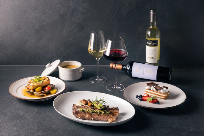 이번 ‘아르헨티나로의 여행’ 프로모션은 아르헨티나산 프리미엄 와인들과 최고의 마리아주를 선보일 수 있는 메뉴들로 코스가 구성되었다. 먼저 애피타이저로는 아보카도 퓌레와 송어알이 곁들여진 신선한 관자 세비체와 ‘2019 테라자스 데 로스 안데스, 레세르바 토론테스(2019 Terrazas de los Andes, Reserva Torrontés)’ 화이트 와인이 함께 페어링 되어 입맛을 돋워준다.
