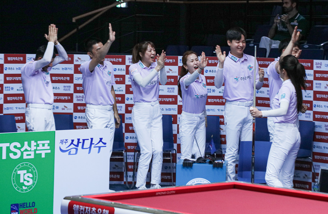 [스마트시니어뉴스=신성식 기자] 19일 경기도 고양시 ‘고양 킨텍스 PBA 스타디움’에서 열린 ‘웰컴저축은행 PBA 팀리그 2023-2024’ 3라운드 6일차 경기가 마무리됐다. 그 결과 이날 휴식을 취한 NH농협카드가 무패(5승·승점14)로 1위를 지킨 가운데, 크라운해태가 2위(4승1패·승점12), 웰컴저축은행과 하나카드가 공동 3위(승점11)로 이를 추격하는 분위기다. |