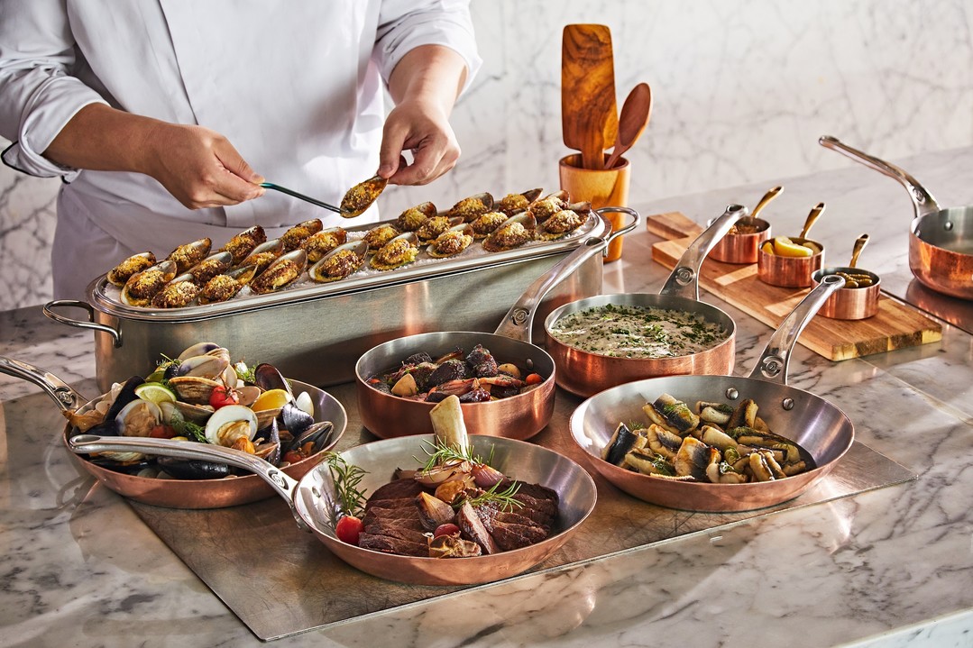 더불어 매주 주말 한 세션으로 운영하는 런치 뷔페 <르 봉 마르셰>는 가을 무드와 메뉴로 새롭게 단장했다. ‘르 봉 마르셰’는 시즌별로 프랑스 지역 한 곳을 선정해 그 지역의 특색과 즐거운 프렌치 미식 문화를 더한 주말 런치 뷔페이다. 가을을 맞이하여 특급 와인을 생산하는 ‘부르고뉴’ 지역의 와인과 마리아주하기 좋은 포테 부르기뇽, 마틀로트 당기유와 블랙 커런트 타르트 등 다양한 프렌치 퀴진으로 프랑스 현지에서 즐기는 듯한 여유로운 식사가 가능하다. 1인 기준 13만원이며, 일정 금액 추가 시 국가대표 출신 소믈리에가 엄선하고 추천하는 프랑스 와인과 샴페인을 프리플로우로 즐길 수 있다.