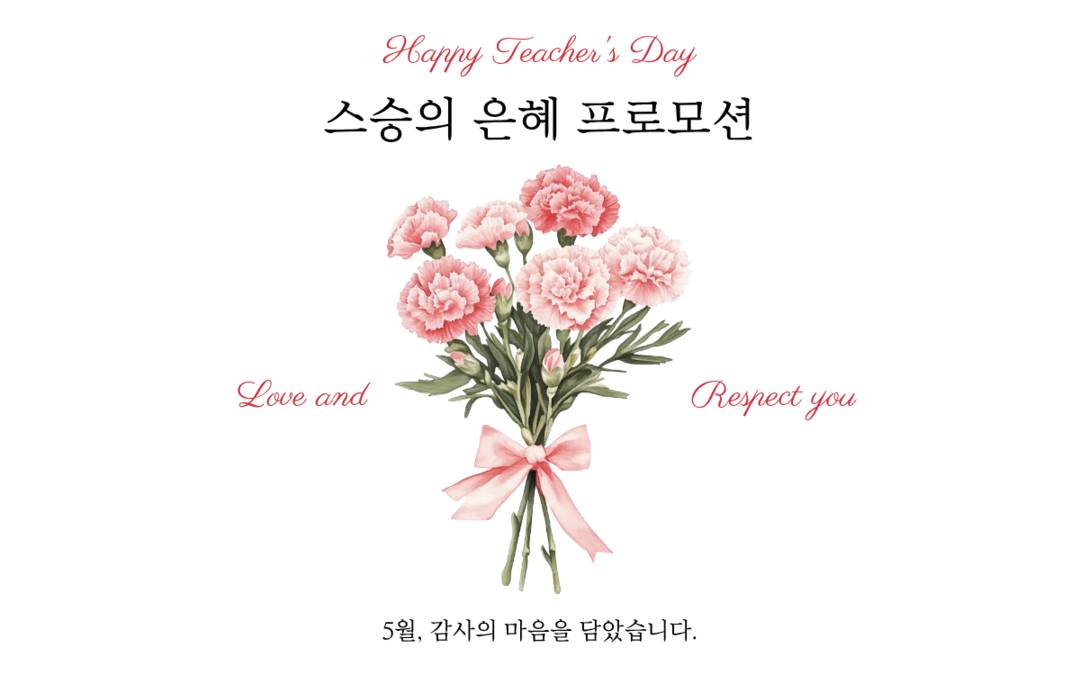 ‘스승의 은혜 프로모션’ 기간은 5월 11일부터 5월 31일까지로, 선생님 본인에게는 뷔페 50% 할인 혜택을 제공하며, 선생님과 함께 동반하는 일행에게도 15% 할인 혜택이 제공된다. 예약은 테이블당 최대 8인까지 가능하며, 선생님 50% 할인 헤택은 최대 2명까지 적용된다. 네이버 및 유선 예약이 가능하다. 프로모션 혜택 적용을 위해 방문 시 반드시 교원자격증, 강사증, 재직증명서 등 타인을 지도할 수 있는 자격증이나 증서와 함께 본인을 확인할 수 있는 신분증을 지참해야 한다. 또한 할인이 적용되는 선생님 본인의 수는 예약 한 건당 최대 2명으로 제한된다. 타 프로모션 및 카드 할인과 중복 적용되지 않는다.
